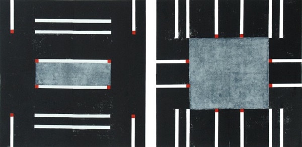 Linoldruck auf Büttenpapier, BFK-Rives, Matches, 63 x 90 cm, 2015, Unikat