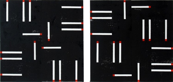 Linoldruck auf Büttenpapier, BFK-Rives, Matches, 63 x 90 cm, 2015, Unikat